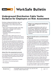 Entering an underground distribution cable vault can put workers at risk of injury from a wide range of hazards. This document provides guidance for employers on assessing the risks before workers enter cable vaults.