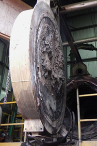 - Not following procedures to permit adequate cooling time: The mill’s written procedure for burner cleanout was not followed. The combustion air fan was turned off before the burner outlet cooled to 80°C. Also, the burner manufacturer’s instructions were not followed: the instructions require the combustion air fan to remain on for three hours before the burner door is opened. By not incorporating the manufacturer’s instructions, the mill’s procedures were not adequate to safely cool the dryer system. These two failures resulted in cleanup work being started in the combustion chamber while high temperatures were still present.