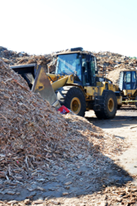 A labourer was removing contaminants such as paper and plastic from a pile of wood chips. He was working by a new wood chip pile about 45 feet (14 metres) away from a front-end loader operator. The operator needed to move the loader, and he checked his mirrors and honked the horn before reversing. Without seeing the labourer beside the wood chip pile, the operator backed up the loader into a narrow passage that required him to drive over part of the pile. The loader backed over the labourer, who succumbed to his injuries.