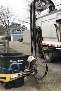 - Improper use of side-loading garbage truck. The employer was operating the side-loading garbage truck contrary to the manufacturer’s instructions — it had affixed a garbage tote to the truck’s hydraulic claw with a bungee cord. The hydraulic claw is designed to pick up and release totes. The employer did not have any written records of hazard identification or risk assessment regarding affixing a tote to the hydraulic claw.