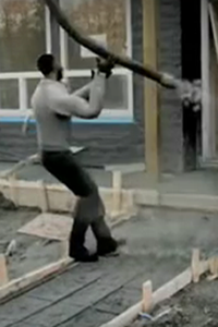 A concrete pump truck was pumping concrete into the walkway of a house while a worker held the end hose. The rubber hose was 20 feet (6 metres) long and had a coupling device attached at the end. The operator of the concrete pump truck saw that the concrete had stopped flowing out of the hose. He pushed the emergency stop button and the pumping stopped. However, compressed air trapped in the supply line behind a blockage forced the blockage to clear suddenly. Concrete burst out of the hose, causing the hose to whip out. The worker holding the hose fell backwards. He struck his head on a piece of scrap lumber and later died of his injuries.