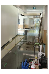 At a newly built elementary school, officials decided to remove metal railings around openings on the second floor that overlooked the first floor. The metal railings were to be replaced with glass partitions. In the meantime, holes in the flooring material created by the metal railings’ feet needed to be repaired. A flooring worker was on the second floor repairing some of these spots at the edge of one of the openings. The worker was using a fall protection harness. At lunchtime, the worker unhooked his harness from the lifeline and walked down the hallway to its opposite end, where he fell through a similar floor opening to the first floor. The worker was transported to hospital but later succumbed to his injuries.