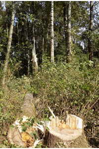 - Poor falling procedures. A stump examination after the incident showed that the undercuts were too deep (over 30%). This led to the tree falling and then causing another tree to break and fall. In addition, escape routes had not been cleared in the underbrush around trees being felled.