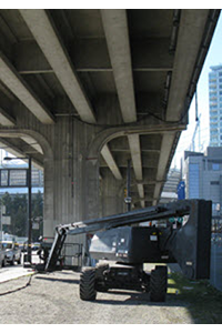 • Worker with no high‑visibility apparel working in close proximity to mobile equipment. The production assistant was not wearing high‑visibility apparel and inadvertently stood under the lift. The workers in the lift were unaware that the production assistant was under the lift. They did not see the production assistant through the grated floor of the occupant platform. The production assistant had not been instructed regarding the hazards associated with overhead work and was not provided with adequate supervision.
