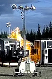 - Electrostatic discharge ignited flammable atmosphere and caused explosion. While the workers were cleaning the LPS, an electrostatic discharge likely occurred within it, igniting flammable vapours and causing rapid combustion of flammable gases. The resulting explosion caused flames to exit the LPS’s inspection hatches, engulfing the immediate area where three workers were standing. The explosion also threw two of those workers away from the LPS.