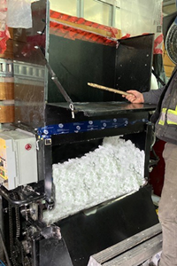 At a residential apartment building construction site, a young and new worker was standing on a stepladder, inserting spray-on fibreglass insulation into an insulation-blowing machine by hand. With spray-on fibreglass insulation, the fibres can build up (bridge) in certain areas of the machine’s hopper, creating undesirable voids in other areas. To address the bridging and help ensure consistent flow and spray-on application of the insulation, the worker occasionally reached into the hopper with a small stick to break up and push the chunks into the voids. While hand-feeding insulation into the machine, the worker inadvertently dropped his cellphone into the hopper. He instinctively reached forward to catch the cellphone, and his arm became entangled in the machine’s scalping augers. The worker sustained serious injuries.
