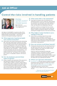 A question and answer format information sheet on preventing MSI injuries in health care.
