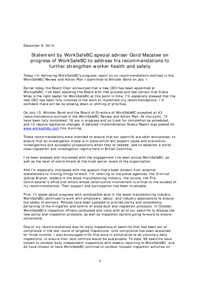 A statement by WorkSafeBC special advisor Gord Macatee on progress of WorkSafeBC to address his recommendations to further strengthen worker health and safety.