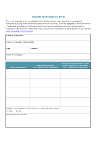 Sample investigation form