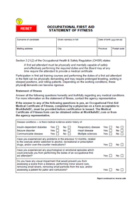 Occupational First Aid Statement of Fitness