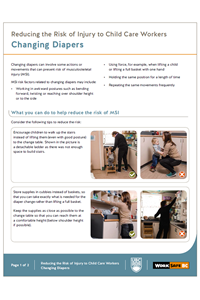 As a child care worker, you may engage in activities that present risk of musculoskeletal (MSI) injury. Learn about ways to reduce risk when changing diapers.
