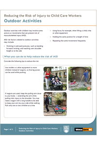 As a child care worker, you may engage in activities that present a risk of musculoskeletal injury (MSI). Learn about ways to reduce risks related to outdoor activities.