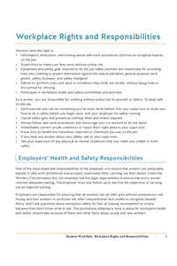 Student WorkSafe Infosheet: Workplace Rights and Responsibilities