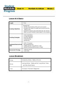 Student WorkSafe Modules for Grade 10 Module 1: WorkSafe an Attitude