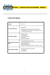 Student WorkSafe Modules for Grade 5 Module 1: Hazards - General and Immediate