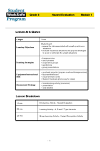 Student WorkSafe Modules for Grade 8 Module 1: Hazard Evaluation