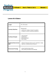 Student WorkSafe Modules for Kindergarten/Grade 1 Module 2: See it. Think it. Do it.