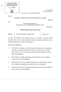 Injunctions are court orders from the Supreme Court of B.C. that require a person or business to comply with the Workers Compensation Act, occupational health and safety requirements, or a WorkSafeBC order.