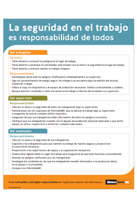 This poster outlines the main rights and responsibilities of workers, supervisors, and employers. It can be posted in the workplace as a reminder that everyone has a role to play in health and safety. The poster is available in two sizes: 8.5×11 inches (letter) and 11×17 inches (tabloid).