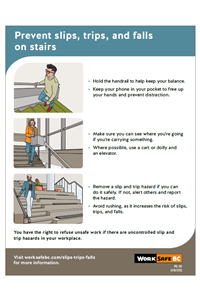 Slips, trips, and falls on stairs can result in serious injuries. This poster highlights practices that can help keep you safe when walking on stairs.