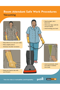 This six-part infographic poster series shows safe work procedures for room attendants to help prevent injuries on the job.