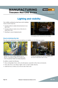 This toolbox meeting guide describes how poor lighting and visibility can lead to injuries.