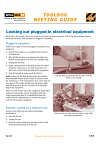 Describes steps necessary to lock out plugged-in machinery and equipment.