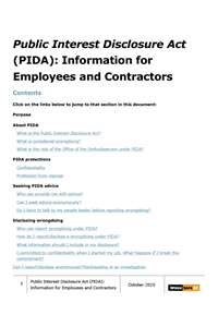 This tipsheet provides current and former employees and contractors of WorkSafeBC information on PIDA and how to report a wrongdoing under PIDA.