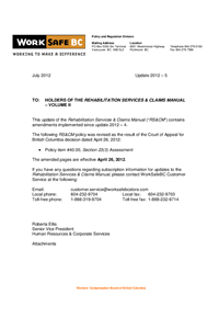 Important: Effective April 26, 2012, policy item #40.00, Section 23(3) Assessment, in Chapter 6 of the Rehabilitation Services and Claims Manual was amended to reflect a B.C. Court of Appeal decision. To view the correct version of this policy, please click on the following link.