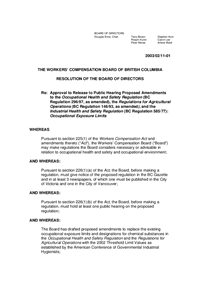 BOD Decision - 2003/02/11-01 - Approval to Release to Public Hearing Proposed Amendments Regarding Occupational Exposure Limits