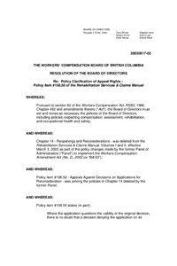 At their June 17, 2003 meeting, the Board of Directors issued a policy clarification stating that policy item #108.50 was not intended to, and does not, apply to the Review Division or WCAT.