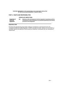 The Board of Directors has approved amendments to reduce duplication and redundancy in the Occupational Health and Safety Regulation and the Regulations for Agricultural Operations.