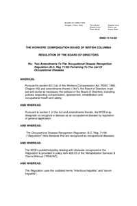 BOD Decision -2003/11/19-02 – Two Amendments Pertaining to the List of Occupational Diseases