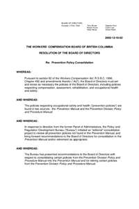 BOD Decision -2003/12/16-02 - Prevention Policy Consolidation