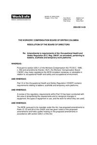BOD Decision - 2004/09/14-05 - Ladders, Scaffolds and Temporary Work Platforms requirements of the OHS Regulation