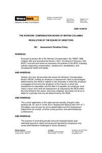 The Board of Directors approved amendments to WorkSafeBC's policies concerning penalties, as provided in Assessment Manual items AP1-47-1 Penalties and AP1-38-5 Payroll Estimates.