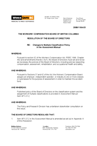AP1-37-2 of the Assessment Manual. The amendments clarify how WorkSafeBC assigns classification units to firms who conduct business in multiple industrial activities.