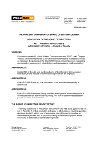 In February 2009, in two separate decisions, a Vice Chair of the Workers’ Compensation Appeal Tribunal ("WCAT") determined that part of the prevention policy on administrative penalties was patently unreasonable. By way of background, the primary factors used to calculate the amount of an administrative penalty in Policy D12‑196‑6 are the nature of the violation, the compliance history of the employer, and the assessable payroll of the employer. The WCAT Vice Chair's decisions focused on the year of assessable payroll that is used for calculating the amount of a penalty. The policy said the penalty is based on the assessable payroll for the most recent full year at the time the penalty is imposed.