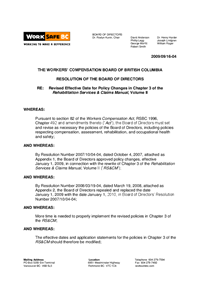 At the September 16, 2009 meeting, the Board of Directors approved amendments to the effective date of the policy changes to Chapter 3 of the Rehabilitation Services & Claims Manual, Volume II to July 1, 2010 to ensure that there would be sufficient resources available to successfully implement the changes.