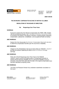 At the December 9, 2009 meeting, the Board of Directors approved amendments to policy item #70.20, Re-openings Over Three Years, in the Rehabilitation Services & Claims Manual, Volume II.