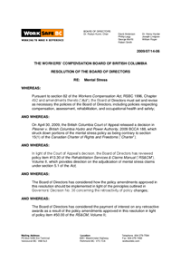 At its meeting on July 14, 2009, the Board of Directors approved changes to policy item #13.30, Mental Stress of the Rehabilitation Services and Claims Manual, Volume II (“RS&CM”). This policy provides direction on the adjudication of claims for mental stress.
