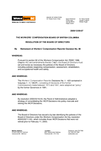 At the December 9, 2009 meeting, the Board of Directors approved the retirement of Workers’ Compensation Reporter Decision No. 99 Re Degeneration of the Spine from policy.