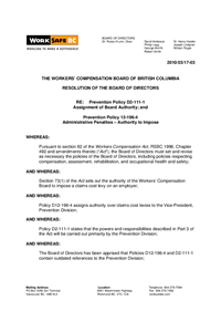 Policies D2-111-1 and D12-196-4 were amended as set out in this resolution, to assign authority over claims cost levies to the President/Chief Executive Officer and to remove outdated references to the Prevention Division.