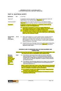 Part 19, Electrical Safety, relating to minimum clearance (electrical safety)