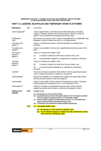 Strikethrough Version and Explanatory Notes - Part 13, Ladders, Scaffolds and Temporary Work Platforms - relating to the safe positioning of ladders