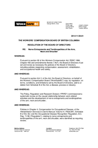BOD Decision -2014/11/20-01 – Nerve Entrapments and Tendinopathies of the Arm, Neck and Shoulder