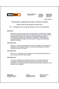 BOD Decision – 2015/12/16-01 – Exemptions from Coverage for Employers in the Trucking Industry