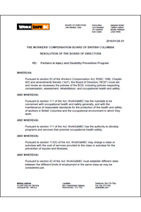 BOD Decision – 2016/01/26-01 – Partners in Injury and Disability Prevention Program