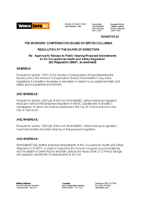 At its July 2016 meeting the Board of Directors approved releasing proposed new joint health and safety committee amendments to public hearings.