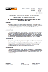 Amendments to requirements of the Occupational Health and Safety Regulation, B.C. Reg. 296/97